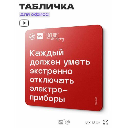 Табличка с правилами офиса "Каждый должен уметь экстренно отключать приборы" 18х18 см, пластиковая, SilverPlane x Айдентика Технолоджи 103696274542