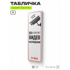 Найти - Табличка Видеонаблюдение 24 часа, на дверь и стену, информационная, пластиковая с двусторонним скотчем, 10х30 см, Айдентика Технолоджи