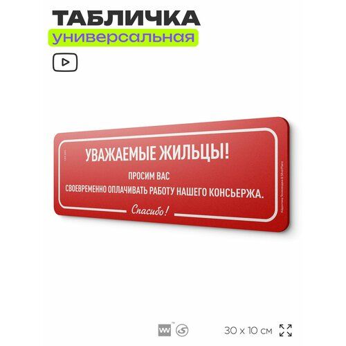 Найти - Табличка Уважаемые жильцы, просим вас оплачивать работу консъержа, на дверь и стену, для подъезда, информационная, пластиковая с двусторонним скотчем, 30х10 см, Айдентика Технолоджи