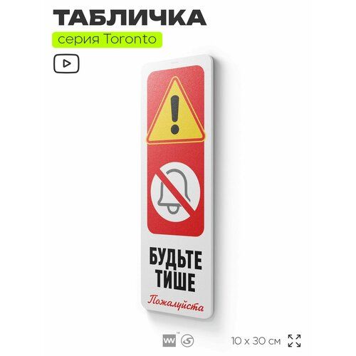 Найти - Табличка Будьте тише, пожалуйста, на дверь и стену, информационная, пластиковая с двусторонним скотчем, 10х30 см, Айдентика Технолоджи