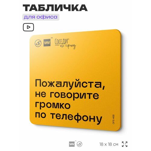 Табличка с правилами офиса "Не говорите громко по телефону" 18х18 см, пластиковая, SilverPlane x Айдентика Технолоджи 103696277047