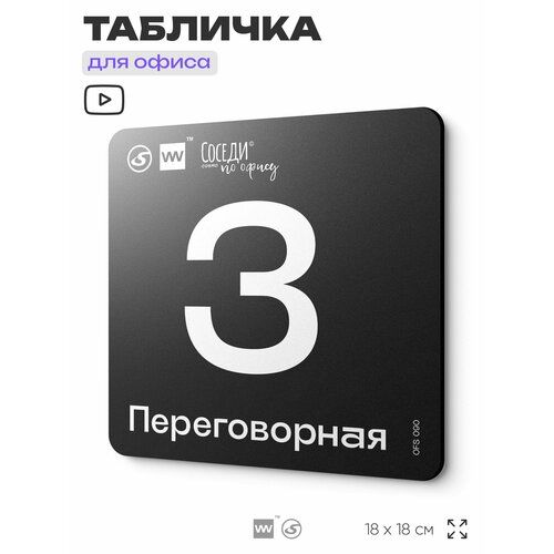 Найти - Табличка информационная Переговорная №3 18х18 см, пластиковая, SilverPlane x Айдентика Технолоджи