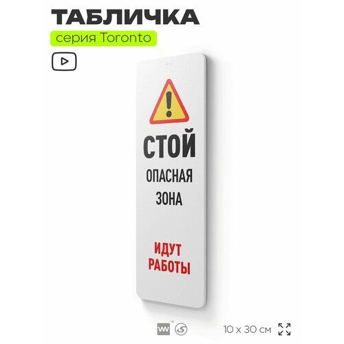 Найти - Табличка Стой, опасная зона, идут работы, на дверь и стену, информационная, пластиковая с двусторонним скотчем, 10х30 см, Айдентика Технолоджи