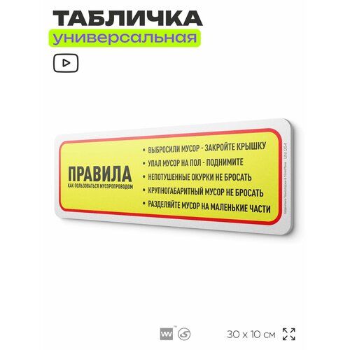 Найти - Табличка Правила пользования мусоропроводом, на дверь и стену, для подъезда, информационная, пластиковая с двусторонним скотчем, 30х10 см, Айдентика Технолоджи