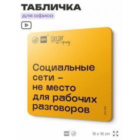 Табличка с правилами офиса "Социальные сети - не место для рабочих разговоров" 18х18 см, пластиковая, SilverPlane x Айдентика Технолоджи 103696277112