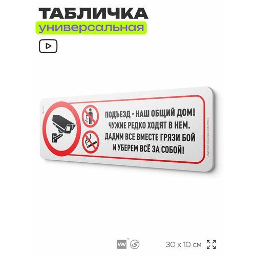 Найти - Табличка Подъезд - наш общий дом, на дверь и стену, для подъезда, информационная, пластиковая с двусторонним скотчем, 30х10 см, Айдентика Технолоджи