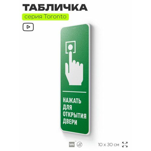 Найти - Табличка Нажать для открытия двери, на дверь и стену, информационная, пластиковая с двусторонним скотчем, 10х30 см, Айдентика Технолоджи