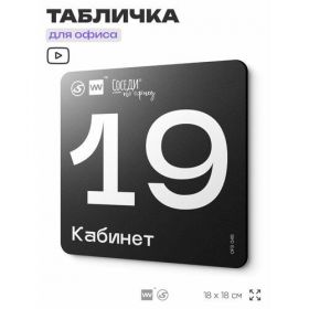Табличка информационная "Кабинет №19" 18х18 см, пластиковая, SilverPlane x Айдентика Технолоджи 103696277208