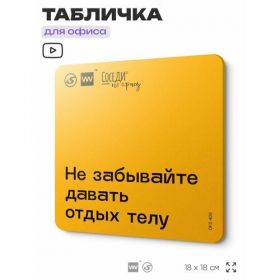 Табличка с правилами офиса Не забывайте давать отдых телу 18х18 см, пластиковая, SilverPlane x Айдентика Технолоджи