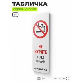 Найти - Табличка Не курите перед окнами, на дверь и стену, информационная, пластиковая с двусторонним скотчем, 10х30 см, Айдентика Технолоджи