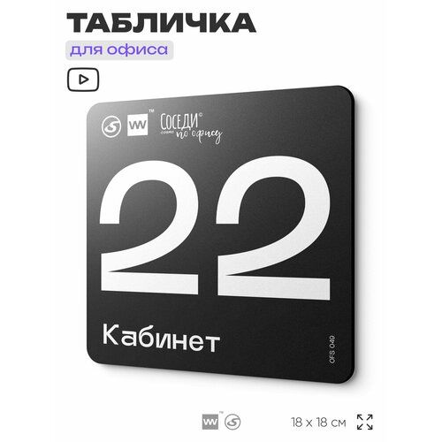 Табличка информационная "Кабинет №22" 18х18 см, пластиковая, SilverPlane x Айдентика Технолоджи 103696277503