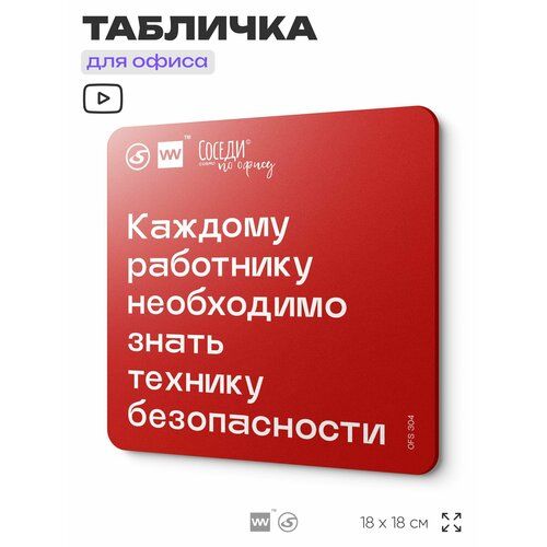 Табличка с правилами офиса "Каждому работнику необходимо знать технику безопасности" 18х18 см, пластиковая, SilverPlane x Айдентика Технолоджи 103696277523