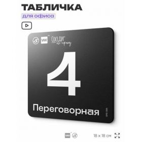 Табличка информационная "Переговорная №4" 18х18 см, пластиковая, SilverPlane x Айдентика Технолоджи 103696277529