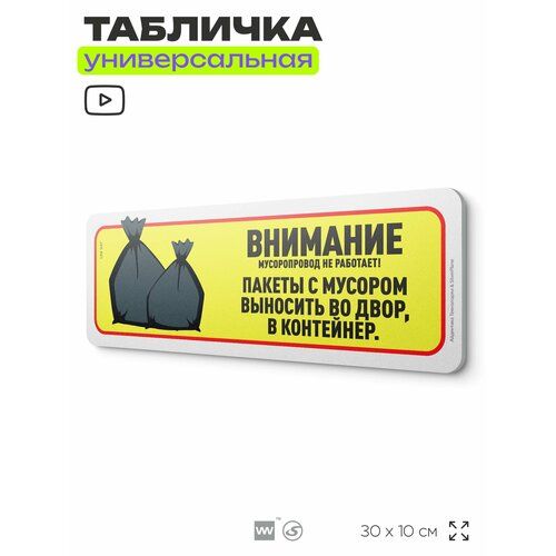 Найти - Табличка Мусоропровод не работает, на дверь и стену, для подъезда, информационная, пластиковая с двусторонним скотчем, 30х10 см, Айдентика Технолоджи