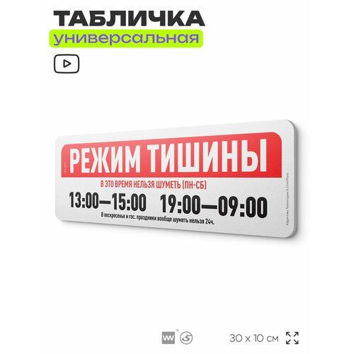 Найти - Табличка Режим тишины, на дверь и стену, для подъезда, информационная, пластиковая с двусторонним скотчем, 30х10 см, Айдентика Технолоджи