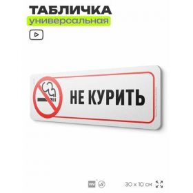 Найти - Табличка Не курить, на дверь и стену, информационная, пластиковая с двусторонним скотчем, 30х10 см, Айдентика Технолоджи