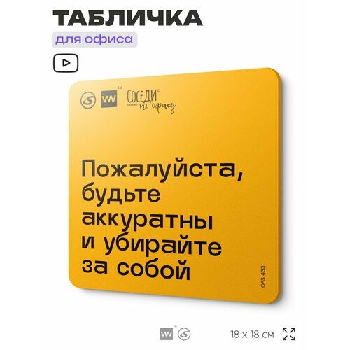 Табличка с правилами офиса "Будьте аккуратны и убирайте за собой" 18х18 см, пластиковая, SilverPlane x Айдентика Технолоджи 103696279229