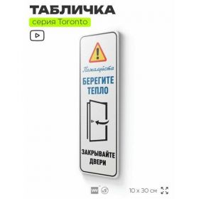 Найти - Табличка Берегите тепло, закрывайте двери, на дверь и стену, информационная, пластиковая с двусторонним скотчем, 10х30 см, Айдентика Технолоджи