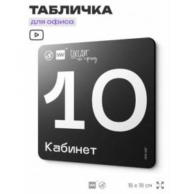 Табличка информационная "Кабинет №10" 18х18 см, пластиковая, SilverPlane x Айдентика Технолоджи 103696282509