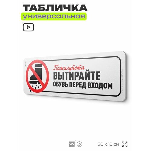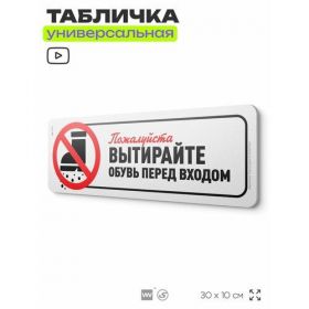 Найти - Табличка Вытирайте обувь, на дверь и стену, информационная, пластиковая с двусторонним скотчем, 30х10 см, Айдентика Технолоджи