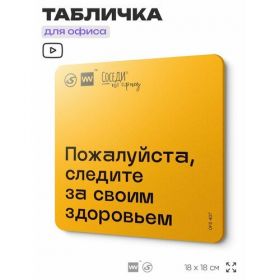 Табличка с правилами офиса "Следите за своим здоровьем" 18х18 см, пластиковая, SilverPlane x Айдентика Технолоджи 103696282514
