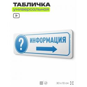 Найти - Табличка Информация справа, на дверь и стену, информационная, пластиковая с двусторонним скотчем, 30х10 см, Айдентика Технолоджи