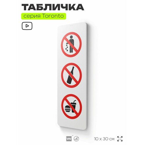 НАЙТИ ВЫГОДНЕЕ - Табличка Не мусорить. Не проносить алкоголь. Не проносить еду., на дверь и стену, информационная, пластиковая с двусторонним скотчем, 10х30 см, Айдентика Технолоджи