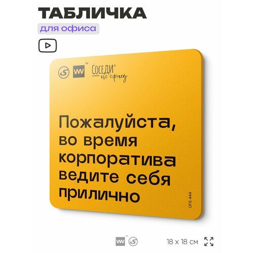 Табличка с правилами офиса "Во время корпоратива ведите себя прилично" 18х18 см, пластиковая, SilverPlane x Айдентика Технолоджи 103696282850