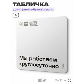 Найти - Табличка информационная Мы работаем круглосуточно, для тренажерного зала, 18х18 см, пластиковая, SilverPlane x Айдентика Технолоджи