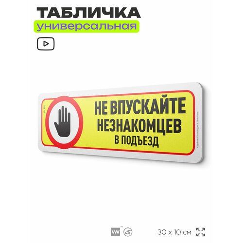 Найти - Табличка Не впускайте незнакомцев в подъезд, на дверь и стену, для подъезда, информационная, пластиковая с двусторонним скотчем, 30х10 см, Айдентика Технолоджи