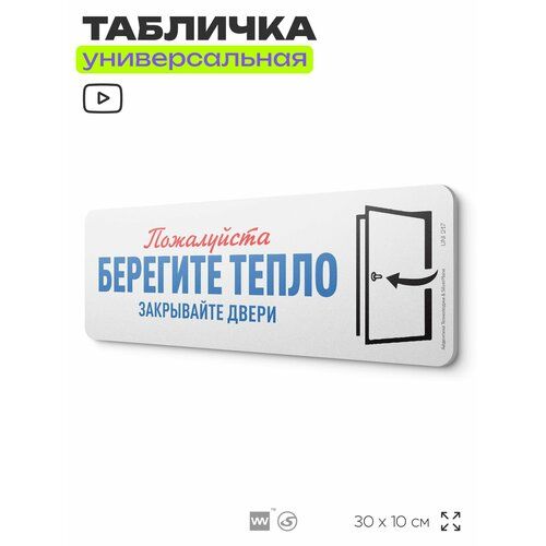 Найти - Табличка Берегите тепло, на дверь и стену, для подъезда, информационная, пластиковая с двусторонним скотчем, 30х10 см, Айдентика Технолоджи