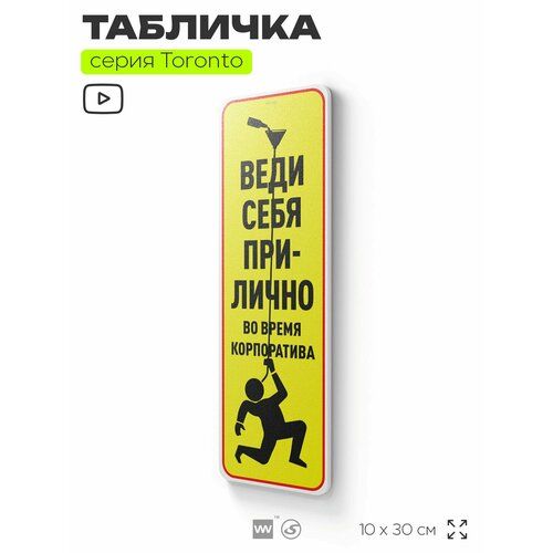 Найти - Табличка Ведите себя прилично во время корпоратива, на дверь и стену, информационная, пластиковая с двусторонним скотчем, 10х30 см, Айдентика Технолоджи