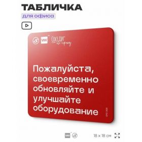 Табличка с правилами офиса "Своевременно обновляйте и улучшайте оборудование" 18х18 см, пластиковая, SilverPlane x Айдентика Технолоджи 103696284659