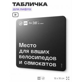 Табличка информационная Место для ваших велосипедов и самокатов для лифта и холла, 18х18 см, пластиковая, SilverPlane x Айдентика Технолоджи