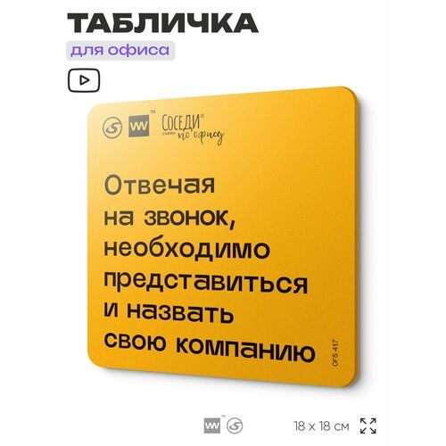 Табличка с правилами офиса "Отвечая на звонок, необходимо представиться и назвать свою компанию" 18х18 см, пластиковая, SilverPlane x Айдентика Технолоджи 103696285791