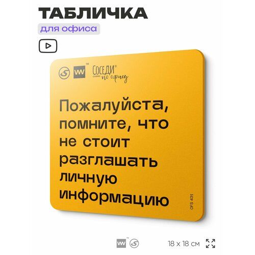 Табличка с правилами офиса "Помните, что не стоит разглашать личную информацию" 18х18 см, пластиковая, SilverPlane x Айдентика Технолоджи 103696285841