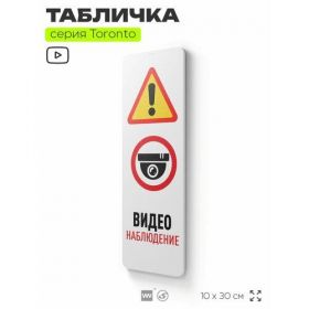 Найти - Табличка Видеонаблюдение, на дверь и стену, информационная, пластиковая с двусторонним скотчем, 10х30 см, Айдентика Технолоджи
