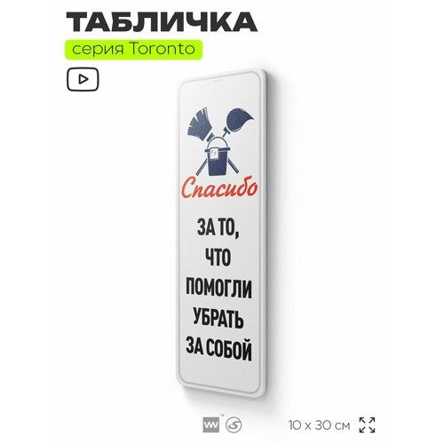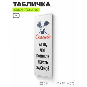 Найти - Табличка Спасибо, что помогли убрать за собой, на дверь и стену, информационная, пластиковая с двусторонним скотчем, 10х30 см, Айдентика Технолоджи