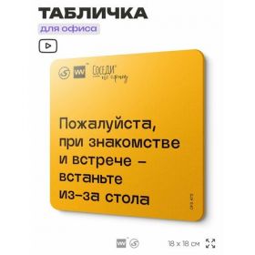 Табличка с правилами офиса При знакомстве и встрече - встаньте из-за стола 18х18 см, пластиковая, SilverPlane x Айдентика Технолоджи 103696285908