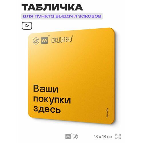 Найти - Табличка для ПВЗ Ваши покупки здесь для оформления пункта выдачи, 18х18 см, пластиковая, SilverPlane x Айдентика Технолоджи