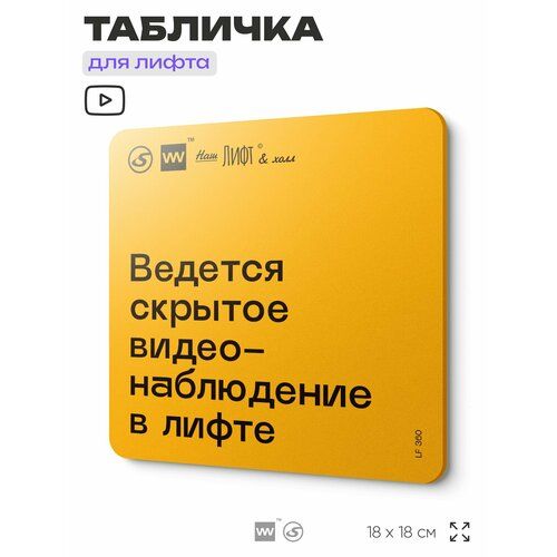 Табличка с правилами для лифта "Ведется скрытое видеонаблюдение в холле", 18х18 см, пластиковая, SilverPlane x Айдентика Технолоджи 103696081708