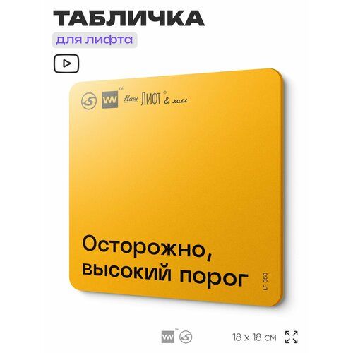Табличка с правилами для лифта Осторожно, высокий порог, 18х18 см, пластиковая, SilverPlane x Айдентика Технолоджи 103696290681