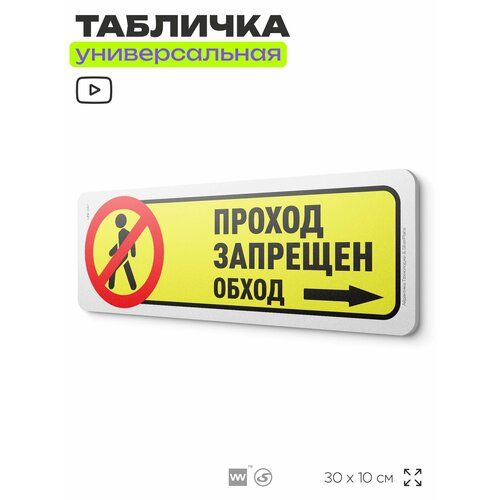 Найти - Табличка Проход запрещен, обход, на дверь и стену, информационная, пластиковая с двусторонним скотчем, 30х10 см, Айдентика Технолоджи