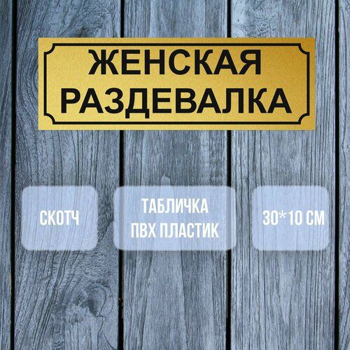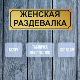 Найти - Табличка Женская раздевалка, на дверь, ПВХ, 10x30 см, матовая, золотая