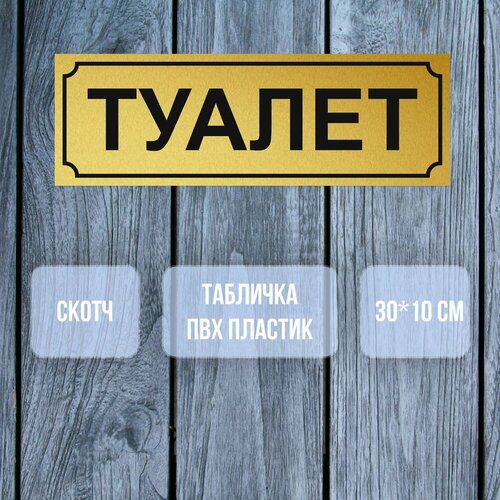 Найти - Табличка на дверь, Туалет, из ПВХ пластика 3 мм. 10х30 см. Цвет матовое золото.