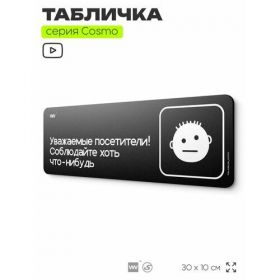 Найти - Табличка Уважаемые посетители Соблюдайте хоть что-нибудь, шуточная прикольная табличка на дверь и стену черная, для офиса и дома, серия COSMO FUN, 30х10 см, Айдентика Технолоджи