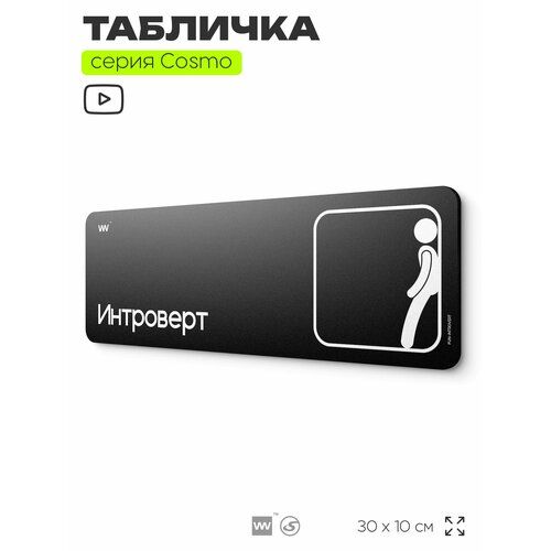 Найти - Табличка Интроверт, шуточная прикольная табличка на дверь и стену черная, для офиса и дома, серия COSMO FUN, 30х10 см, Айдентика Технолоджи