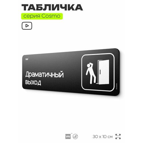 Найти - Табличка Драматичный выход, шуточная прикольная табличка на дверь и стену черная, для офиса и дома, серия COSMO FUN, 30х10 см, Айдентика Технолоджи