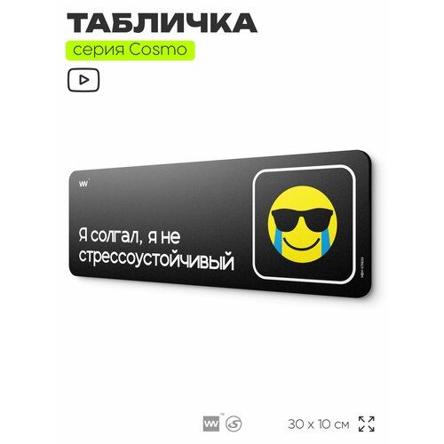 Найти - Табличка Я солгал, я не стрессоустойчивый, шуточная прикольная табличка мем на дверь и стену черная, для офиса и дома, серия COSMO MEM, 30х10 см, Айдентика Технолоджи