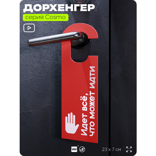Найти - Дорхенгер Идет всё, что может идти, табличка на ручку двери, красный, пластиковая, серия COSMO, Айдентика Технолоджи